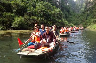 Afterward, you'll make your way down the mountain on foot, taking in the natural beauty of the surrounding landscape. Finally, you'll board a boat back to the Ben Duc boat harbor and depart for your hotel in Hanoi.