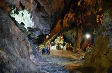 Upon arrival at the bottom of the mountain, you'll enjoy a delicious lunch at a local restaurant before visiting the Hien Tru Pagoda (also known as the Heaven Kitchen pagoda). Next, you'll take a cable car to the top of the mountain, where you'll witness stunning views of the surrounding area! There, you'll visit Huong Tich Son, the main temple of the Perfume Pagoda complex, located in a cave where you'll learn about the history and spiritual significance of this important site!